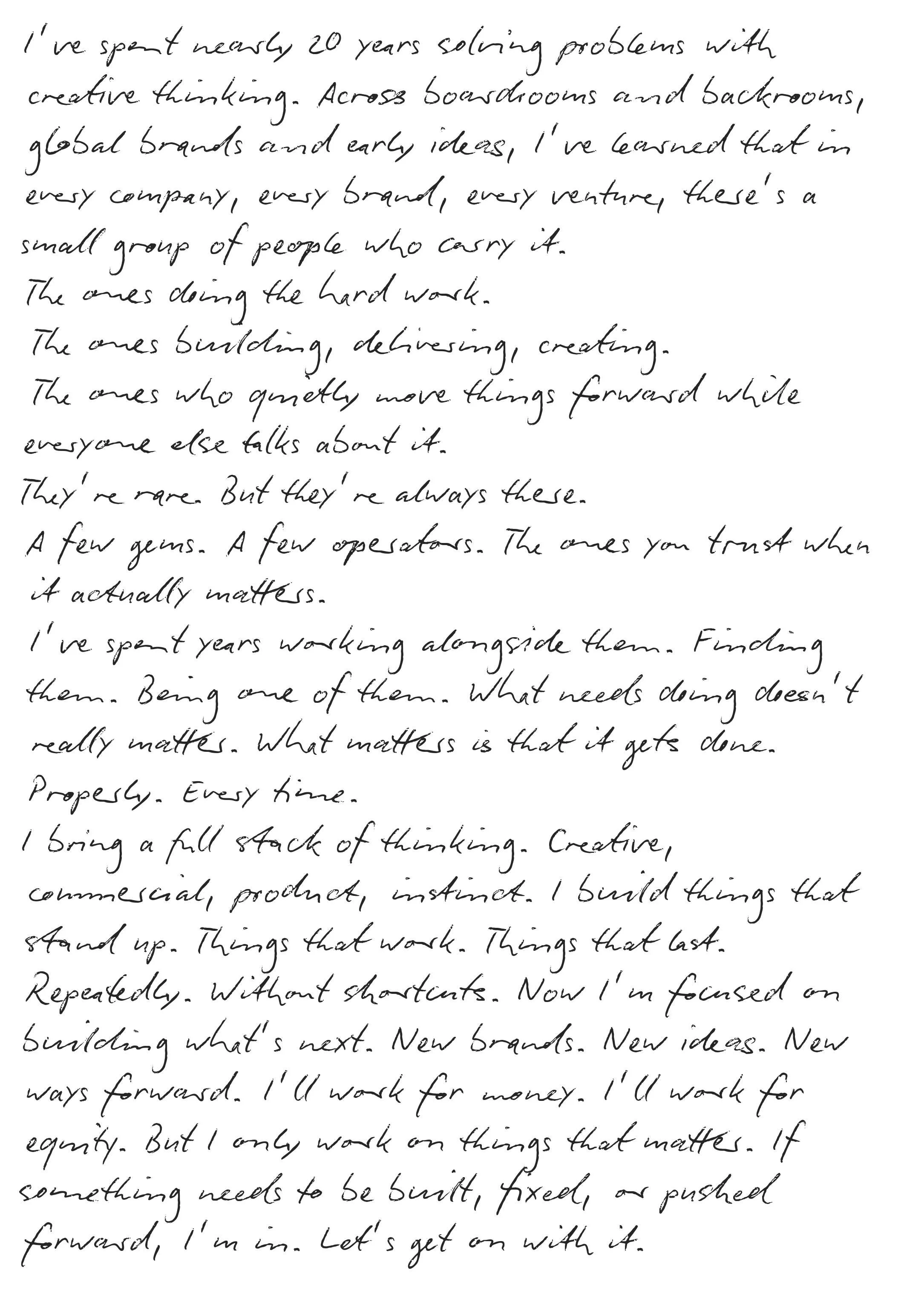 We work as co-founders, directly with clients, support other agencies with resources, and provide consultancy as contractors.
